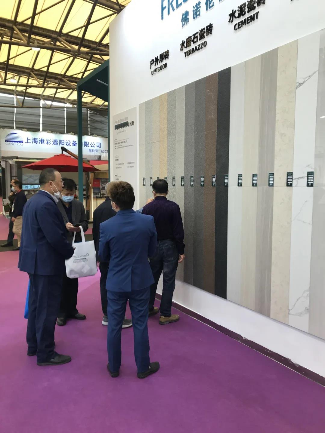此次上海國際酒店工程設(shè)計(jì)與用品博覽會(huì),佛諾倫莎瓷磚重點(diǎn)展出了18mm高光面戶外園林厚磚、水磨石瓷磚、水泥瓷磚等現(xiàn)代仿古磚系列,迎來全球各地的客商朋友參觀和合作洽談。