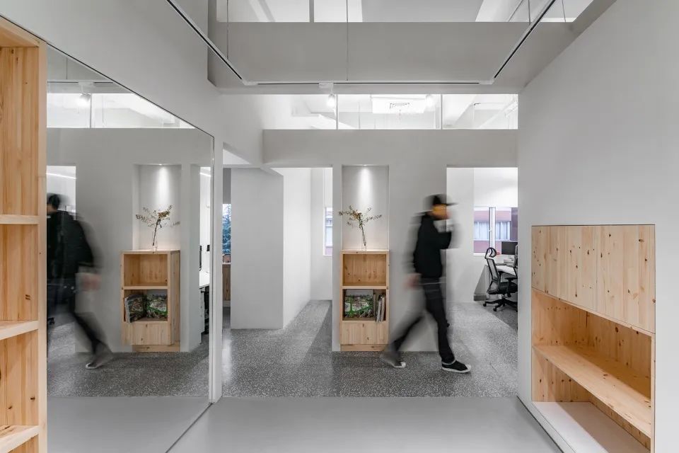 假如真的有所謂的“恒定”和“永久”的話,那就是,“改變是永恒的”。空間內的流動和層次感在錯落有致的結構設計中彰顯的淋漓盡致。Mo?意大利灰時尚水磨石,在在自然光和人工照明的配合下,透出富有深意的氣質,具有的儀式感和藝術感,人們在這樣的環境工作,必能激發出無限創作的靈感和工作動力。